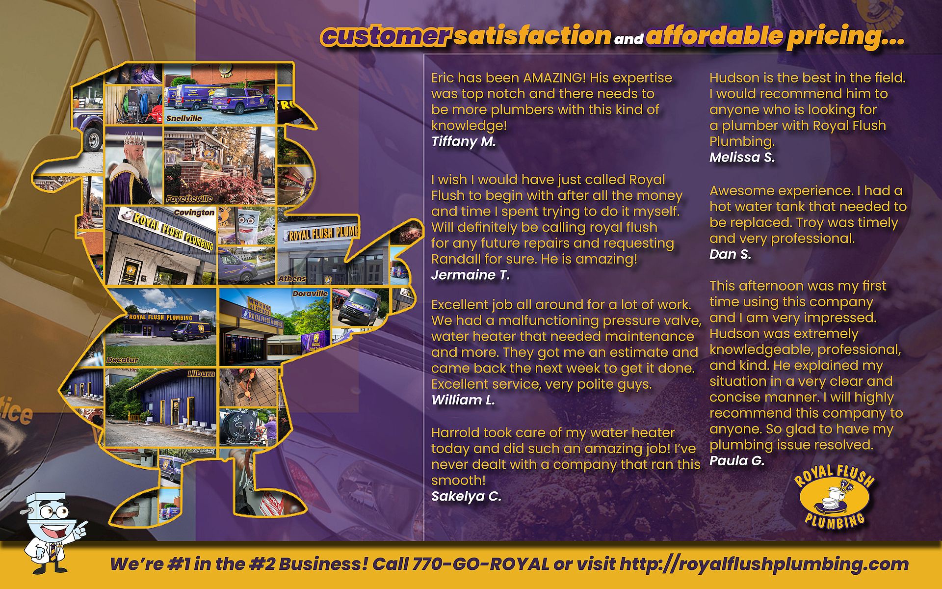 Call us now at 770.385.5911, ask about our free quote, and learn how Royal Flush Plumbing can help you with all of your Plumbing needs!